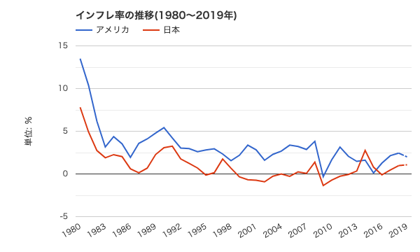 ↓(アメリカ・日本のインフレ率比較/世界経済のネタ帳参照・リンク)