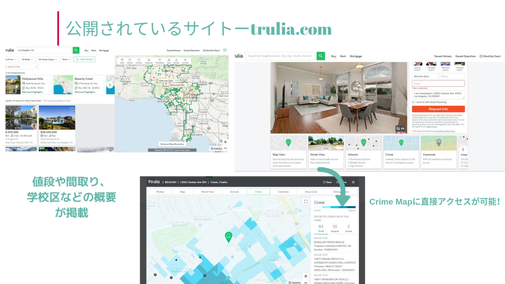 近隣でどんな犯罪が起きているか、危険なエリアか、などチェックすることが可能です。
