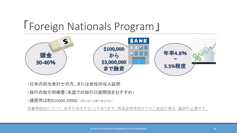 「Foreign Nationals Program」と一般的に呼ばれる、外国人向けローンが復活しました。